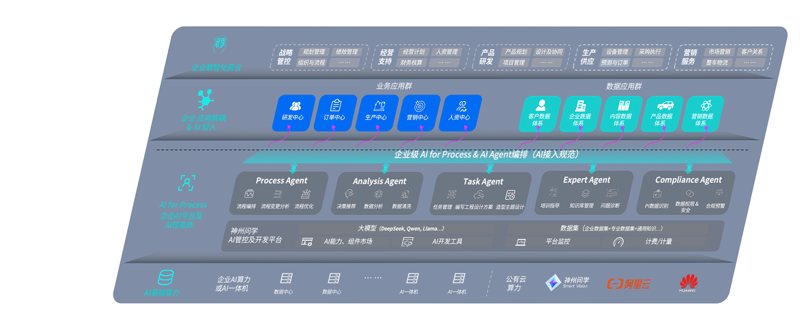 端到端的一站式AI工作空间深度融合了从企业战略规划到日常经营的全流程业务板块,,,定向解决车企内部领域多、、、、部门多、、、、链条长、、、场景碎片化等难题,,支持车企快速构建以AI为核心的生产力写作体系,,,实现任务执行与AI能力的无缝集成与交互